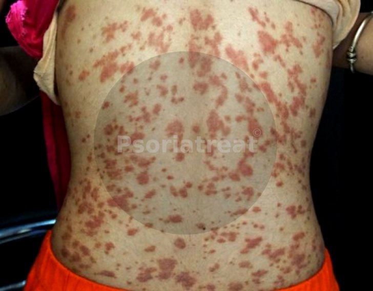- Red, raised patches on skin covered with thick, whitish-silver scales.